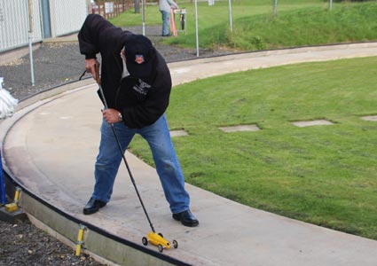 As the cars are 'horsed' there is time to step off the track and make it back to the driver's refuge. However, as you are allowed three minutes to commence your run it is possible to stop the car up to three times and make adjustments, or if it does not get away at all or is reluctant to come up, then restarts are possible. As the car might stop anywhere on the track though, it can involve some swift running to get back from the far side before the timing can start with the car almost up to full speed before you make it back. Tends to concentrate the mind somewhat.