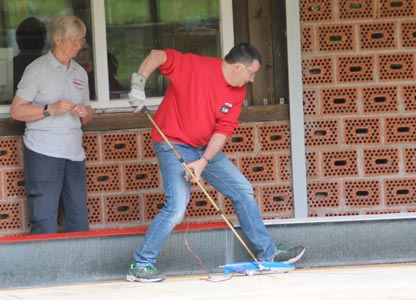 Having progressed through the classes from a 1.5cc it was finally time to give the newly built 10cc a run at Witterswill. Oh dear. the car did not move an inch as I departed over the top of it and down the track. Soon learned that the bend in Christoph's and Maggie's sticks is what is needed to get a ten away.