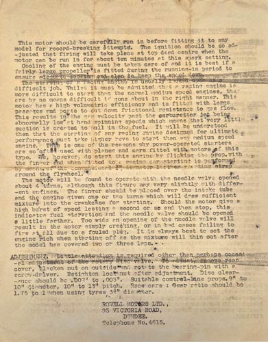 In December we received an email with numerous images attached, which turned out to be the most complete collection of Rowell paperwork ever, along with the motor that it all pertained to. One extra piece of paper though changed our whole understanding of the tethered cars that Rowell produced, and what has been perceived up to now as the correct history of one of their products, now revised entirely as the title suggests.