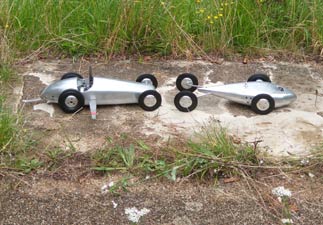 car with 5cc ETA engine. Right, ZN spur drive car with ETA motor.