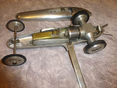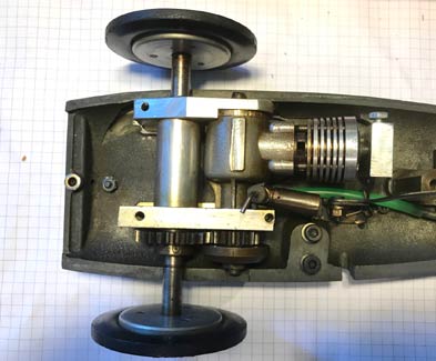 By the mid 1950s The Tiger twinshaft was requiring ever smaller tyres to keep the motor in the optimum rev range. The Raylite style wheels could not go any smaller and there was also a serious problem with lack of ground clearance, which led to the almost universal adoption of the Tiger aero engine in either spur or bevel drive configuration to allow a much wider selection of tyres to be used, as well as the opportunity to change gear ratios. Oliver did produce a prototype motor with an integral gear drive and a foot mounting but that was overtaken by numerous competitors with their own ideas, notably Stan Drayson, double European Champion with an Ian Moore bevel drive car, Ken Procter and multiple World and European Champion, Roland Salomon with spur drive cars.