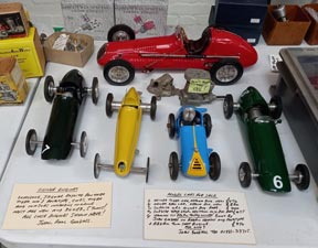 John Goodall had several tethered cars for sale on his table, but it was what appeared later in the morning that caused something of a kerfuffle. Again, we had seen it before but it had not been for sale and the owner left before we could photograph it, but here it was again, and for sale this time round. It was a 10cc car reputed to have been owned and run by Ernest Jackson of the Derby Club. A quick look inside showed marked similarities to another Jackson car discovered back in 2019 and featured in Pitbox for that year. This one had a McCoy 60 installed rather than a Dooling, connected to a McCoy gearbox, but in what looked like a one off pan with an extended front axle. Subsequent research concluded that this was yet another car of Swedish origin, both probably having been bought by Jackson when he hosted the Swedish team at the Derby Club in 1949? Then commenced the sparring, how much was it worth, how much would the owner accept, but as the posters used to say, delay is dangerous, too much discussion before it was snapped up for a very modest amount by another trader.