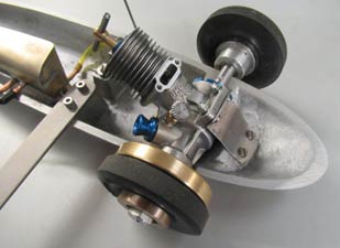 There had been many who advised me that the single wheel drive especially at 2.5cc would be difficult to start and I think this stems from the SMRU cars from Sweden which often employ well used 1.5cc PAW engines by FEMA car runners used to glow motors with tuned pipes and not familiar with diesels. I did not accept this at all as the hobby started just after WW2 when only aero engine’s were available and no difficulties starting were reported then? I also have a 10cc teardrop car with single wheel drive and a 10cc aero engine power, which Richard Hellander said his father ran a lot in Sweden. Enough said!! I decided to use the new SAM 25 engine as most appropriate to the project, I briefly ran it on my test stand with a propeller.