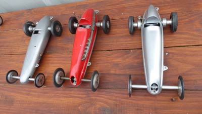 In a way, Saturday was a tad disappointing as the only exception to the raft of twinshaft diesels was Lyndon Bedford's venerable ETA, now of pensionable age, but still going strong. Lyndon was also running his 'schools car' that he has been modifying for some time to improve the performance. What is proving something of a head scratcher is that despite the arrival of the Redfin motors and sixty plus years the cars have still not reached the speed that the Oliver cars were reaching in the 1950s. Roland Salomon set a world record of 91mph in 1958 with an Oliver, so that has to be a target. Left: Superb detailing on this Oliver Ferrari |