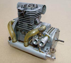 Another visit to Norfolk. The first trip to Brancaster looked at a B class two stroke that was well ahead of its time. The return journey discovers another quite amazing piece of engineering from John Duffield. Again a 15cc two stroke, but this time with an eccentric vane supercharger built integral with the engine. This was the last motor to be built by John and probably was never run in this form, but with the supercharger removed and the engine fitted into a purpose built lightweight hull it was run successfully by John Demott in the 70s and 80s, and by Lynn Blowers more recently. A detailed look at this engine and its more recent history has now been added to the site. Thanks to John DeMott for this item. Feb 08 |