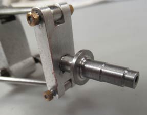 Hugh Blowers also provided me with copies of period articles on building this highly detailed model. That enabled me to make the front axles turned up in my lathe. The Chris Garcia wire wheel hubs are very small in diameter and I managed to find two ball bearings that would fit one each end of the hub giving a stable mount to the wheels when all were mounted on the axles. I turned up dummy brake drums and back plates were fabricated from two pieces of aluminium with mesh debris guards trapped between the two pieces riveted together. I added dummy hydraulic hoses made from O-ring rubber.