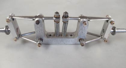 I could now concentrate on the rear suspension. I wanted this to be as close to original as possible and made up the swing arms in mild steel silver soldered to steel bushes which held the gearbox shaft housings, I added steel pockets into which the multi leaf springs ends fitted and made from Phosphor Bronze. I made up a sub frame from light gauge steel to which the swing arms would be pivoted. The centre of these pivot‘s has to be co incident with the coupling joint pivot exactly. The forward end of the springs were crimped into a bracket bolted each side to the sub frame inside the swing arms. The sub frame spreads the suspension load's widely on the fragile body. John talks about his work on the car go to www.youtube.com |