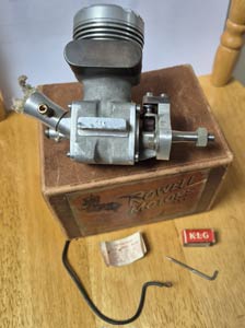 The Mk I Rowell 60, introduced in 1948, is essentially a British version of the American McCoy. Quite crudely cast and relatively heavy, it was available for car or aeroplane use at £12. It was also offered in a glow version for 50p less, but none of these have yet been discovered. It was not on par with the American motors in terms of power, but because of import and currency restrictions, was on general sale, unlike the motors from the States that could only be obtained by clandestine means. |