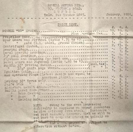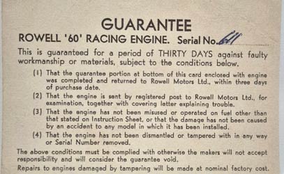 In December we received an email with numerous images attached, which turned out to be the most complete collection of Rowell paperwork ever, along with the motor that it all pertained to. One extra piece of paper though changed our whole understanding of the tethered cars that Rowell produced, and what has been perceived up to now as the correct history of one of their products, now revised entirely as the title suggests.