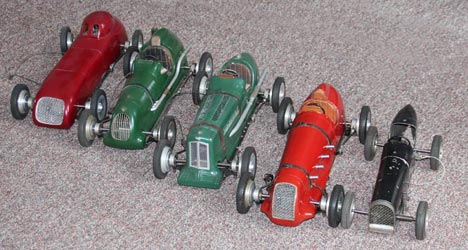 The genesis of the photo was back in the late 1960s and the good old days when model shops still existed. Russ Models of Battersea was a regular destination as a student, cycling over from Chelsea for bits and pieces. On one such visit, a customer came in bearing something called a RTP (round the pole) car, by then just a historical piece of modelling memorabilia. The shop owner was not interested in buying it so said student walked out with a model of a GP Austin that had two front wheels and a third in the cockpit, all for the princely sum of £1.50. This was indeed the catalyst, unknown at the time, for what became something of a lifelong obsession with tethered cars.