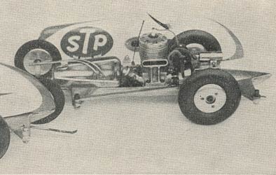 | Dooling Arrow Nothing unusual about this car, apart from its 'back story'. It was bought and run in the USA by the late Tony Higgins when he worked there. On his return to the UK he brought this, along with other cars and engines, back with him where it stayed until he sold most of them on many years later. The car is seen in an illustration from an ME article in 1978, still with its original Bruce Underwood Yellow Jacket YJ61C. having passed through the hands of a notorious dealer it was sold on to a British tethered car enthusiast, but magically, the Underwood YJ had morphed in to a very ordinary and not particularly good standard Dooling 61. The other side of the body carries decals attesting to its origins and the YJ motor and we have a pretty good idea of where the engine might have gone, but now the car is no longer original as it was in 1978. |