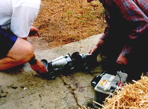 | Dick Roberts with 'sidecar' | Thousands of laps by PAW power | Many and various cars |