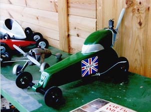 Conscious of the need for a facility to run cars, Peter built a track in the grounds of Railway Cottage, his home in Bedfordshire, which became the regular venue for Retro Club members for fun competitions and thoroughly enjoyable ‘days out’. Apart from the couple of portable poles that were set up on car parks in the South West, the track at Souldrop was the only permanent facility available in this country. With Santa Pod Drag strip to the west and the Midland mainline immediately to the East, noise was hardly a problem on the ten laps to the quarter mile track. This was used extensively with many events and an assortment of trophies until the end of the 90s, when a move to Lincolnshire brought an end to the ‘Souldrop Speedway’ and the opportunity to run cars.