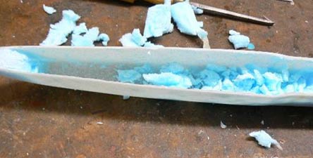 Dig the foam out with a chisel. Any hard to get to areas wash out with cellulose thinners. The completed top in the second picture is how it came off the plug, minimal finishing required. |