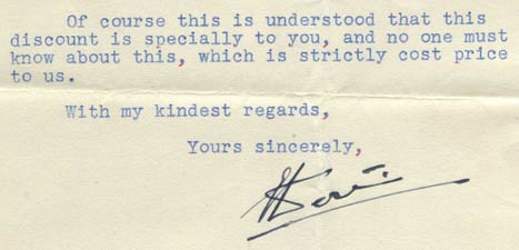 Even this was not quite as simple as first thought as in the full sized car world, Zere seemed to be pronounced Zeere(ay) with an accent over the final e. This cannot be confirmed though and there is a possibility that it was not an accent, but an apostrophe indicating the missing letters. Whether it was through difficulties with typeface or for some other reason, this version of his name has not been documented but there is a mark of some sort evident in the only signature we have of his, but otherwise it was the plain Zere. Oddly, as it transpires, in some circles and published articles he was known as Edward, but no idea how this came about? His prime activity during the 1930s appears to be the preparation and tuning of cars for racing, being closely associated with cars and personalities such as R.F. Oats and Heinrik Widengren from the famous Brooklands circuit in Surrey. There are numerous records of his work with the French Amilcars, which seems to have developed during the late 1920s when he purchased a 1925 4 cyl. 1074cc, Grand Sport Amilcar. The inscription on the photo of the car reads ‘My little truck’ indicating that it might have been his personal transport? |